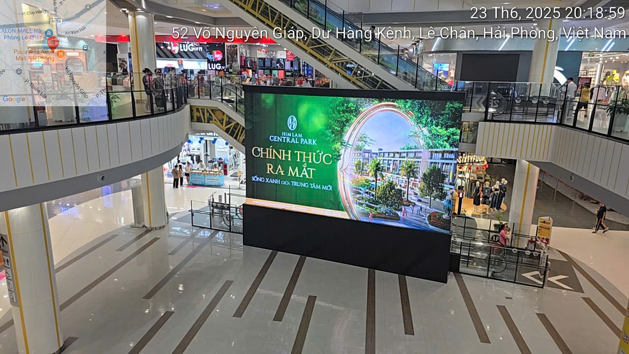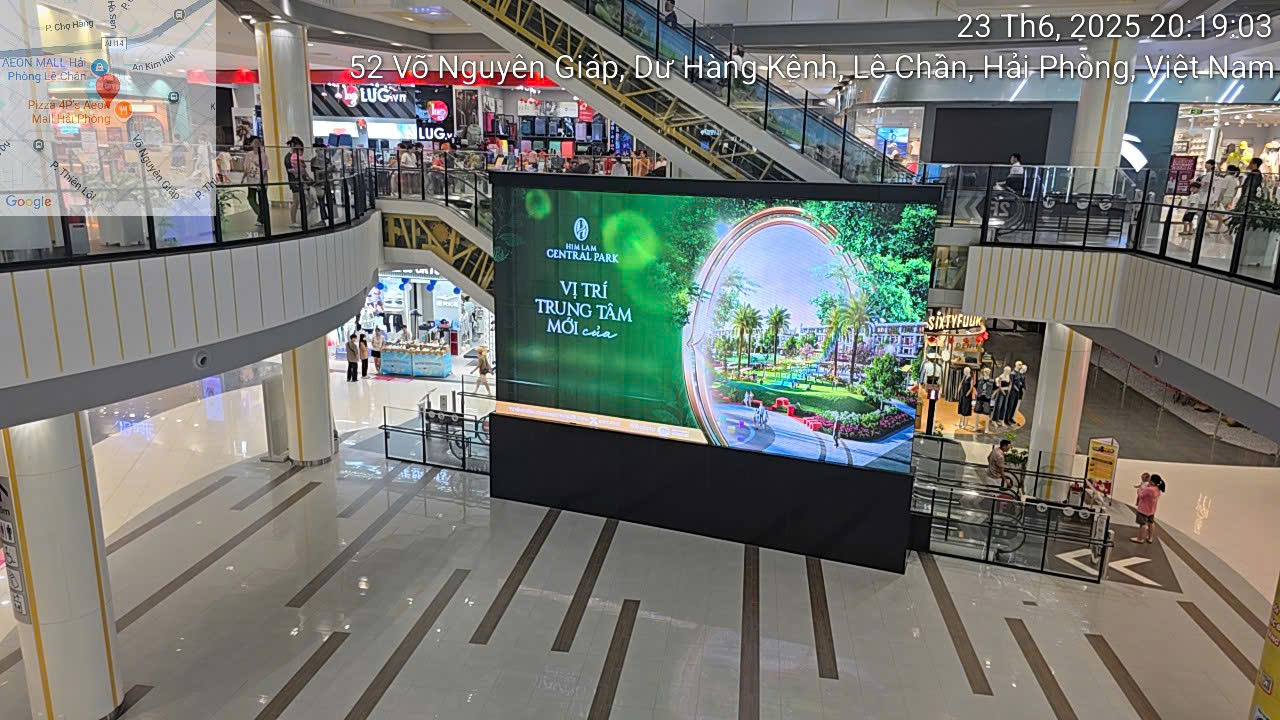Nằm trong khu thương mại AEON Mall – một trong những trung tâm sầm uất nhất Hải Phòng, có lượng traffic cao nhất thành phố. Màn hình LED lớn, hiện đại, phát sóng hình ảnh sinh động, giúp thương hiệu Him Lam tiếp cận hàng chục nghìn khách hàng mỗi ngày.