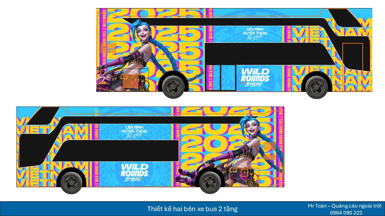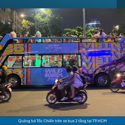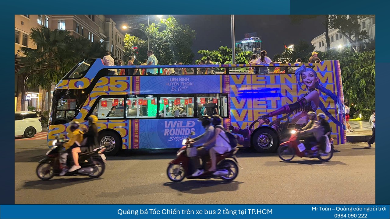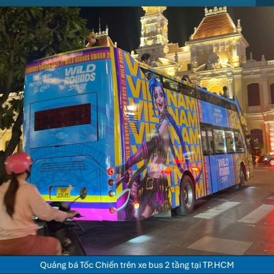Dự án quảng cáo VNG Games – Tốc Chiến trên xe bus 2 tầng tại TP.HCM nổi bật nhờ khả năng phủ rộng, lặp lại tần suất cao và xuất hiện tại các tuyến đường biểu tượng của thành phố. Xe bus 2 tầng có kích thước lớn, chiều cao vượt trội, giúp hình ảnh quảng cáo dễ dàng thu hút sự chú ý giữa không gian đô thị đông đúc.