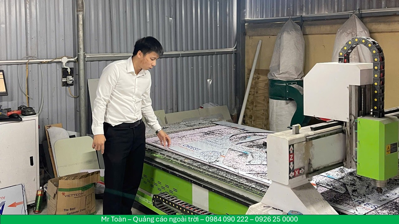 - Dùng máy cắt CNC / laser để cắt từng chữ theo kích thước trên bản vẽ.