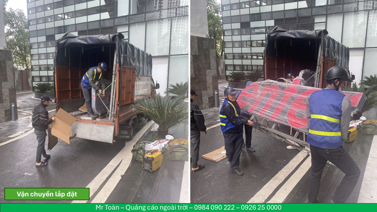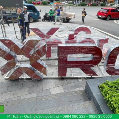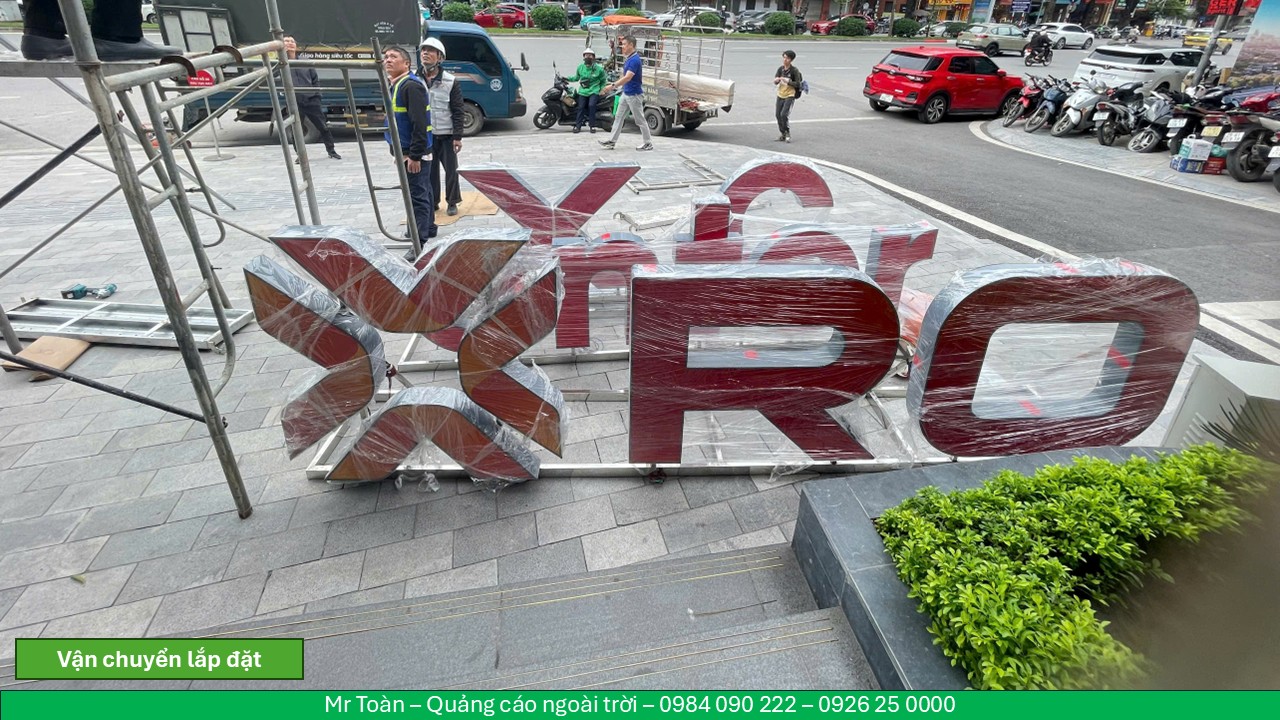 Khi bộ chữ đã hoàn thiện: Từng chi tiết được bọc, chèn xốp, bao bì để tránh trầy xước, móp méo. Sắp xếp khoa học lên xe vận chuyển tới The Ninety Complex – 90 Đường Láng. Chuẩn bị đầy đủ thiết bị hỗ trợ thi công: dây treo, bulong nở, giàn giáo, xe nâng (nếu cần)…