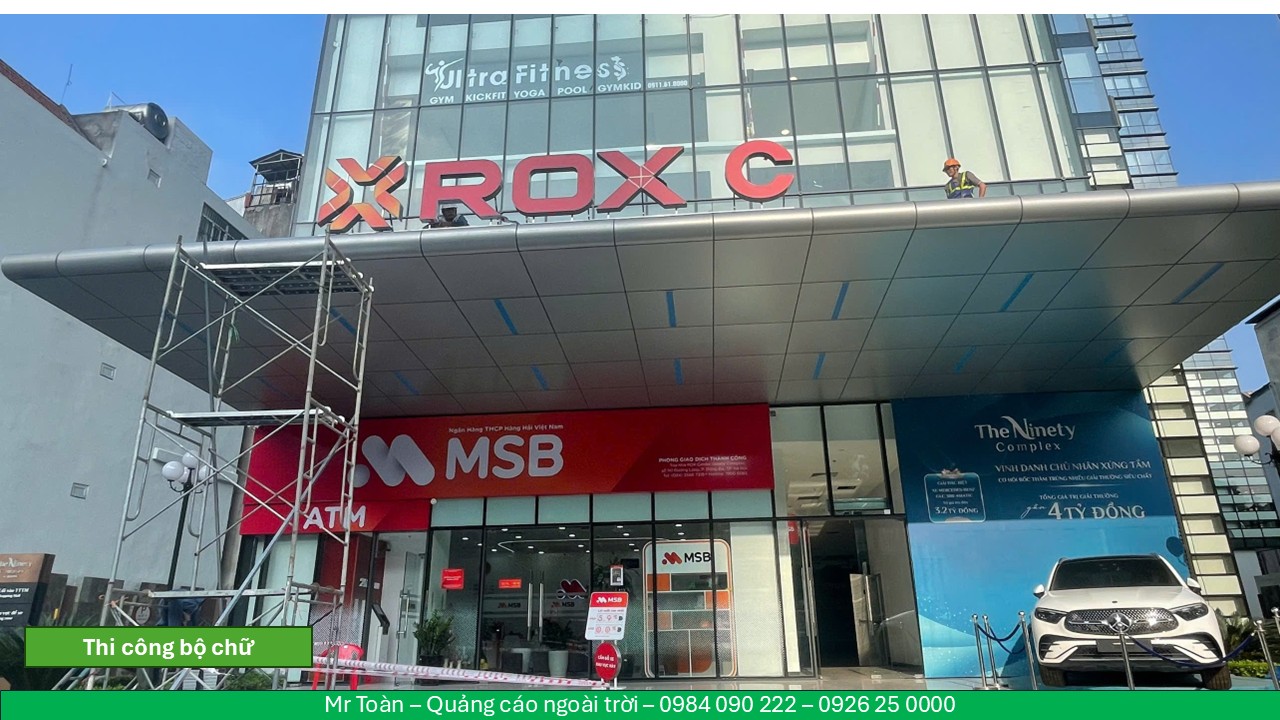 Dự án thi công bộ chữ ROX Center tại The Ninety Complex – 90 Đường Láng được triển khai theo quy trình rõ ràng: khảo sát, lên phương án, in test màu, sản xuất, lắp đặt và nghiệm thu. Nhờ đó, bộ chữ thương hiệu đạt tính thẩm mỹ cao, bền chắc ngoài trời, nổi bật trên trục đường có mật độ giao thông lớn. Đây là một ví dụ tiêu biểu cho việc thi công bộ chữ quảng cáo ngoài trời hiệu quả, chuyên nghiệp và chuẩn nhận diện thương hiệu.