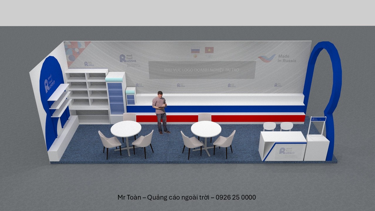 Tông màu chủ đạo: Xanh – Đỏ – Trắng, thể hiện hình ảnh quốc kỳ Nga