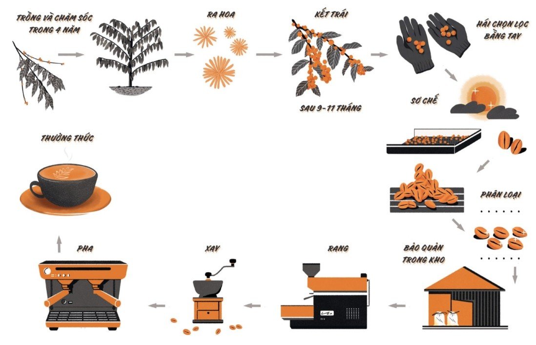 Để có được một ly caffe ngon trên bàn của bạn, thì những hạt caffe cũng đã phải cốgắng rất nhiều, và phải qua rất nhiều công đoạn
