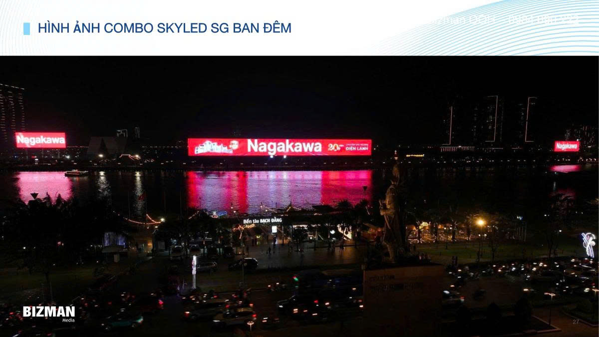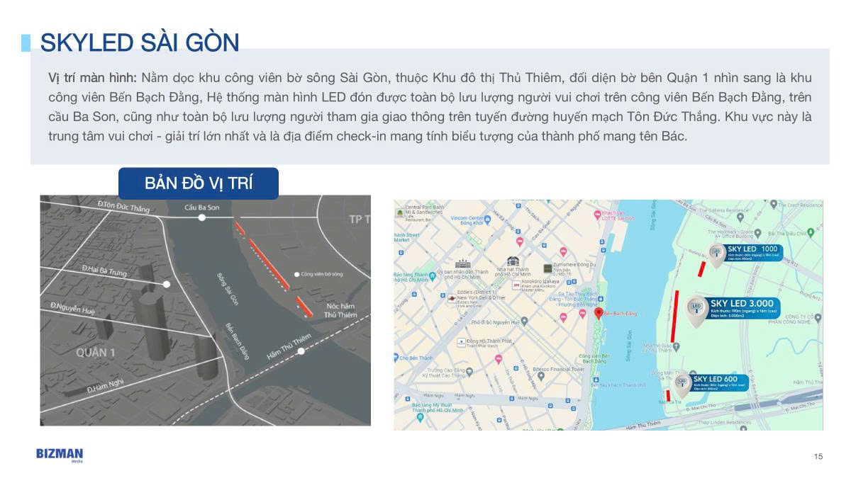 Tại TP.HCM, SKY LED Sài Gòn được xem là một trong những điểm nhấn nổi bật nhất của quảng cáo ngoài trời. Đây là tổ hợp màn hình LED cỡ lớn ven sông, sở hữu vị trí vàng ngay trung tâm thành phố, nơi hội tụ dòng người qua lại đông đúc nhất. Với quy mô khổng lồ và công nghệ hiện đại, SKY LED trở thành biểu tượng quảng cáo không thể thiếu trong chiến lược truyền thông của các thương hiệu hàng đầu.